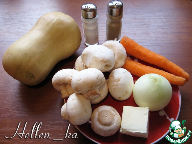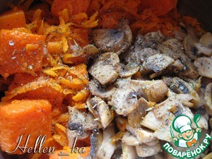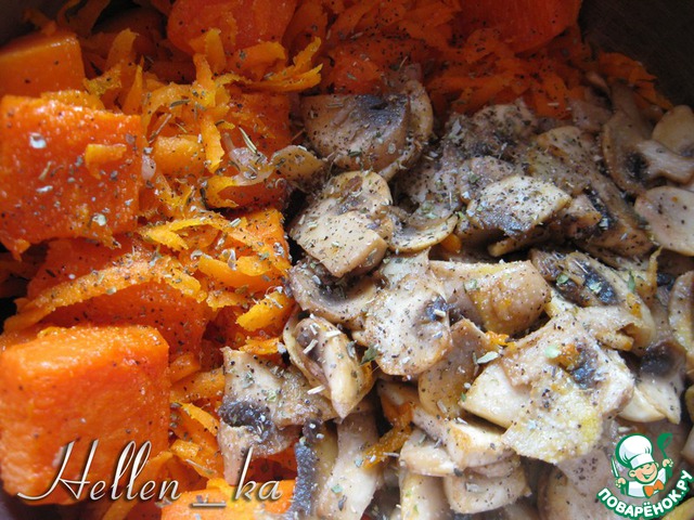 Тыква... думала, ну что из нее можно еще приготовить? Благодаря нашим поварятам использовала ее, так сказать, креативно: печенье, рулеты, блины, суп... Давно хотела "соединить" тыкву с грибами, получилось очень необычно! Попробуйте!