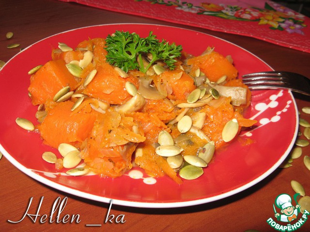 При желании блюдо можно украсить поджаренными тыквенными семечками или нарезать зелень петрушки.