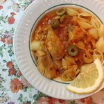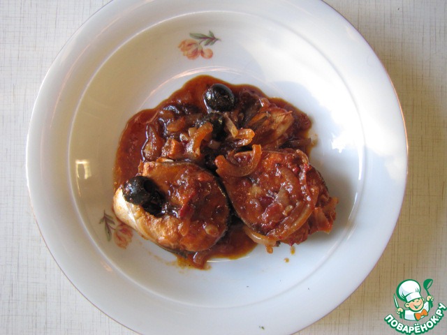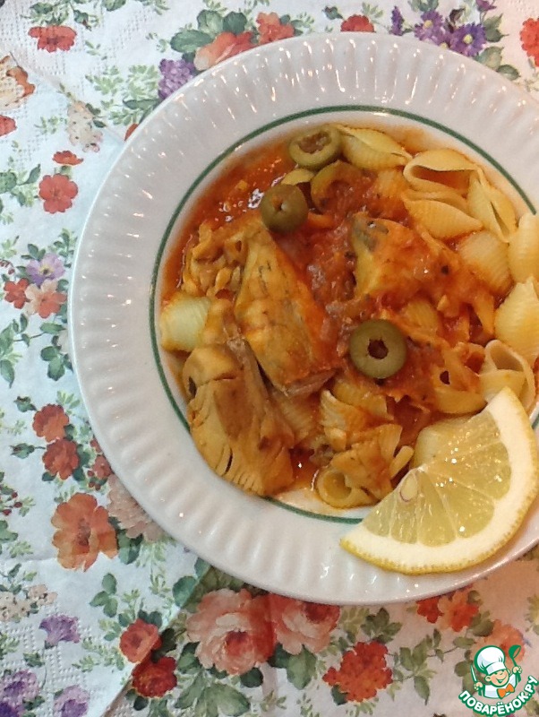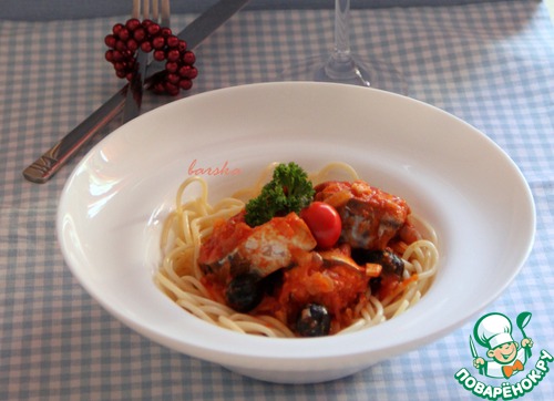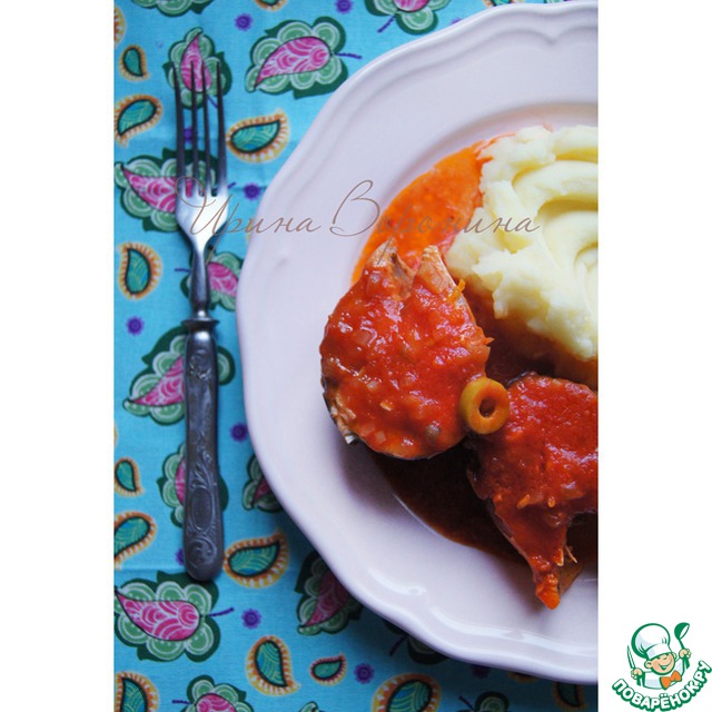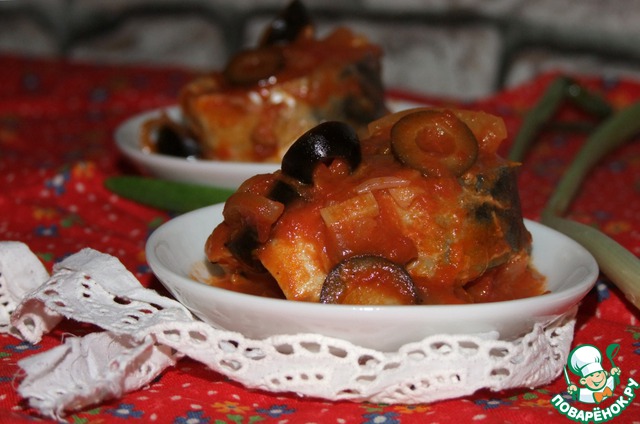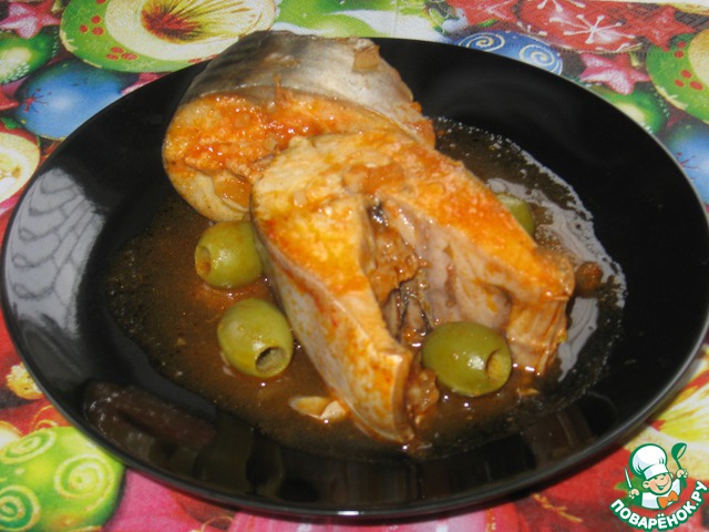 Скумбрия в томатно-апельсиновом соусе с маслинами