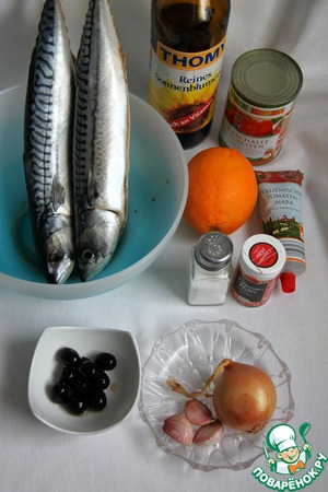 Ингредиенты для «Скумбрия в томатно-апельсиновом соусе с маслинами»: