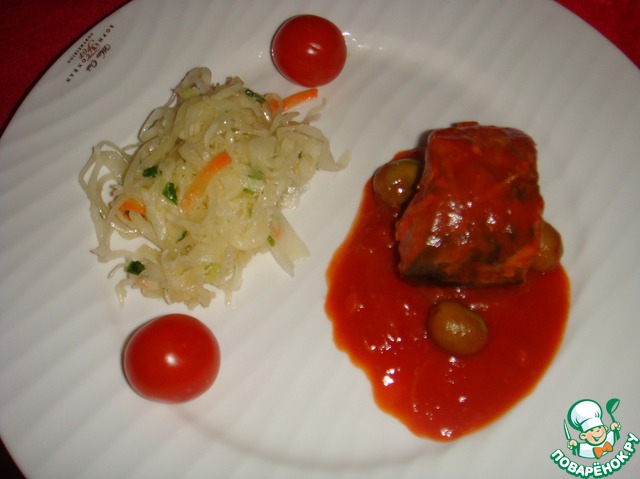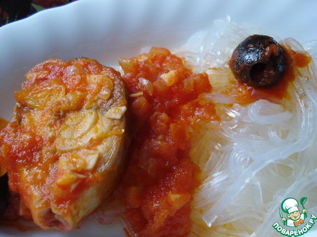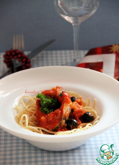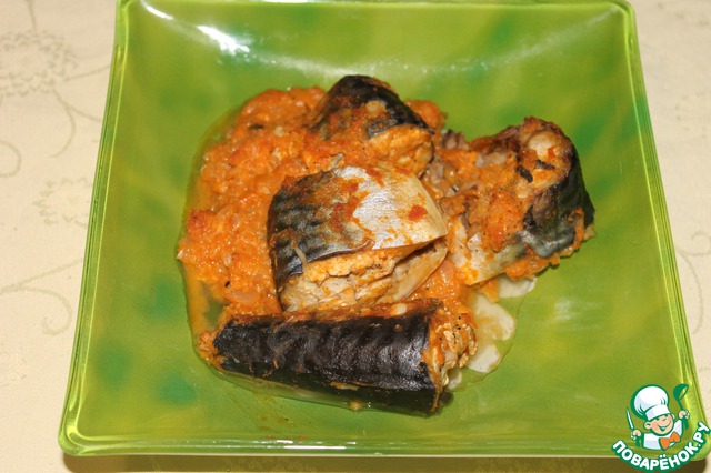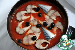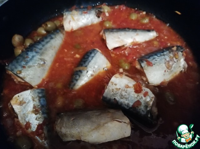 Рецепт «Скумбрия в томатно-апельсиновом соусе с маслинами»: