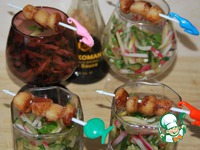 Для сервировки салата можно брать низкие стаканы, бокалы, даже рюмки с широким горлышком.