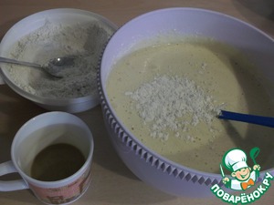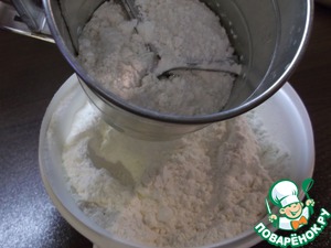 Муку смешать с крахмалом и разрыхлителем, просеять.
