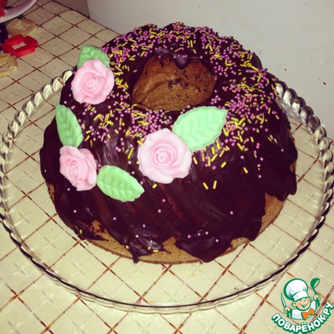 Шоколад (кувертюр) рубим и растапливаем на паровой бане. Заливаем шоколадом бабку и украшаем.