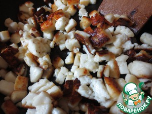 Пожарить сырные шарики (или кубики) на сковороде с добавлением 1 ст. л. масла.