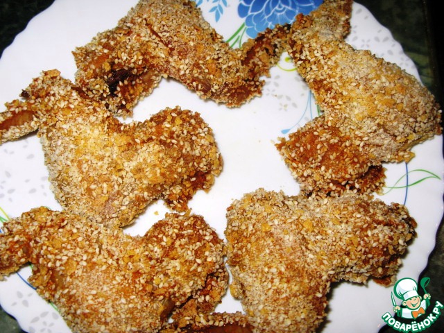 Каждое крыло хорошо обваливаем со всех сторон в панировке.