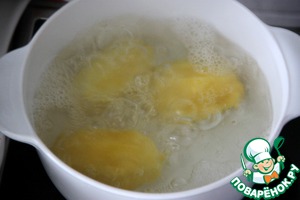 Вскипятить воду, посолить. Картофель очистить и поставить отвариваться до полуготовности (минут 10-12), проверяйте вилкой...