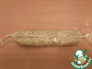 • Выложить тесто на пищевую пленку, сформировать колбаску и отправить в холодильник до застывания.