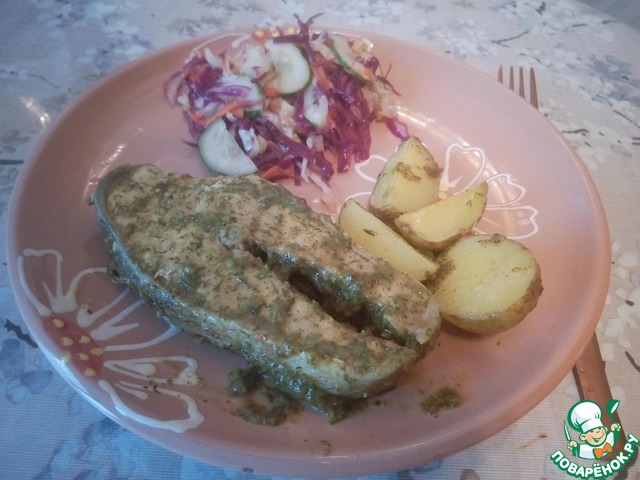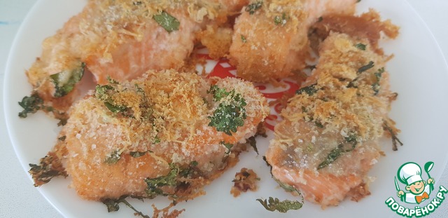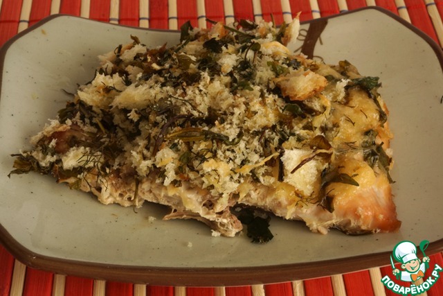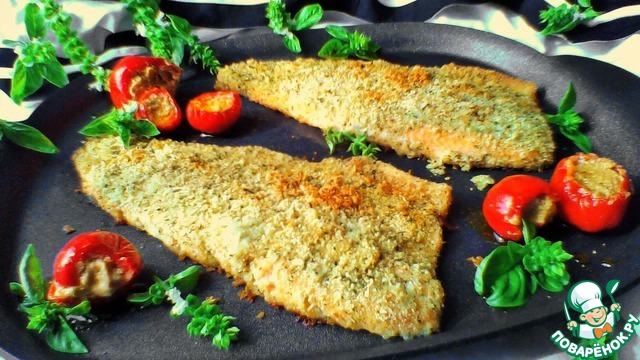 Рецепт «Запечeнная рыба в зелeной панировке»: