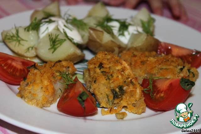 Запечeнная рыба в зелeной панировке
