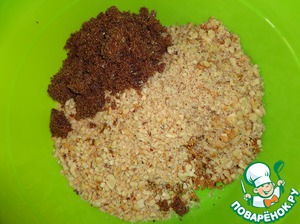 Смесь из орехов смешиваем с сахаром и руками хорошенько перемешиваем, чтобы не было комочков.
