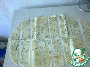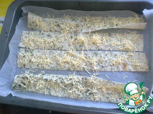 • Перекладываем на противень, застеленный пергаментной бумагой. Посыпаем сыром.