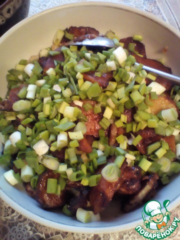 И выкладываем на блюдо, пересыпая зеленым луком.