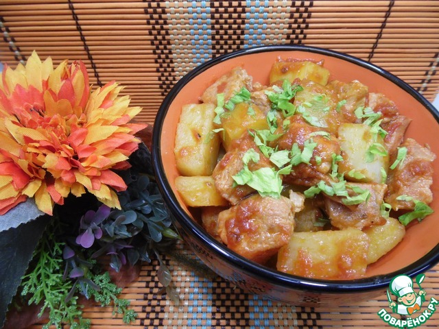 Очень вкусные, сытные и ароматные сочетания для холодных дней. Рагу готовится по своей технологии (рецепт из "Гастронома "), поэтому все кусочки в нём - целенькие, сочные, но в то же время пропитаны вкусами и специями. Готовится просто.
