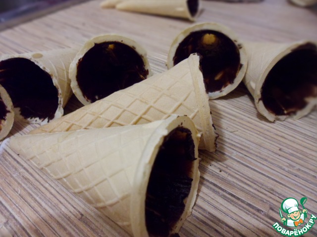 Итак, я нашла вот такие вафельные рожки. У некоторых, правда, верхушечка слегка пообломалась, но это не страшно, я думаю, все равно ж для домашних делала.