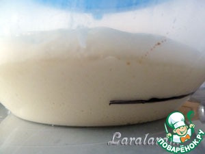 Тесто надо оставить для брожения на 30-40 минут (при 25°) — тесто должно увеличиться в 2 раза.