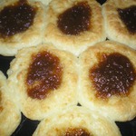 В каждую выемку выкладываю по ст. л. варенья/повидла и отправляю в духовку на 20-25 мин при 180 гр.