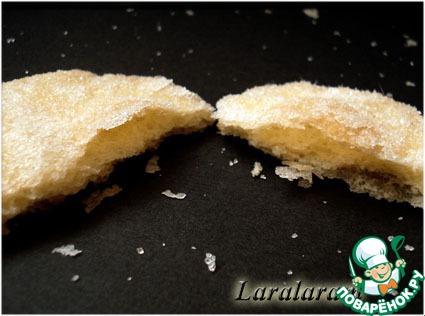 Перед противнем некоторые печенья обмакнула дополнительно в сахар, так корочка красивей получилась.
