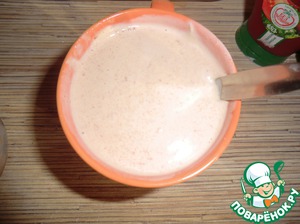 Соус для заправки смешать в однородную массу из майонеза, сметаны и кетчупа, я добавляю всегда немного карри или паприки, только чуть чуть.