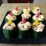 Морепродукты у нас в семье очень популярны стали, вот и приходится на праздники выдумывать, как бы их по-новому преподнести. Предлагаю такой вариантик подачи салата, надеюсь, кому-то пригодится!