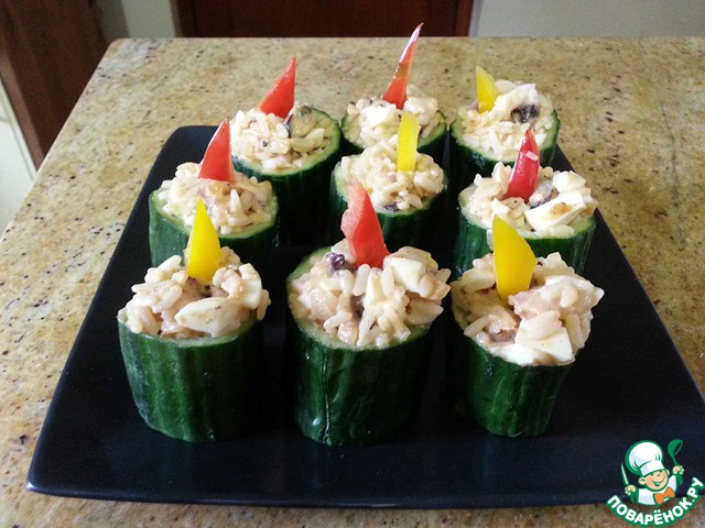 Рецепт «Салат "Морской коктейль в бочонках огуречных"»: