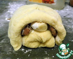 Покрываем все наше сооружение пластом белого теста.