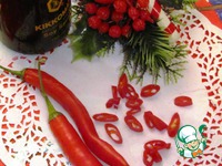 Кусочки ананаса укладываем на тарелку, поливаем карамелью и украшаем чили. Так как это очень острый перец, то выбирайте, как лучше поступить с нарезкой - для любителей погорячее - крупно, как у меня. Для остальных лучше совсем немного присыпать мелкими кусочками перца.