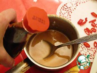 В кастрюльку насыпаем сахар, добавляем воду, мед и варим на небольшом огне до приятного золотистого цвета.