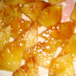 Теперь раскаляем сковородку и обжариваем кусочки фрукта с каждой стороны до румяного состояния. Имитируем гриль, так сказать