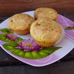 Вот и мои кексики. Ничего неожиданного не произошло. Сделала полпорции, получилось 4 шт. Две из них ровненькие, у двух чуть крышу с одного края подняло. А так кексики вкусные, ароматные, воздушные. Добавляла из зелени укроп и петрушку. Автору, по ходу, все равно какие мы тут печем, она даже никого не отметила.
