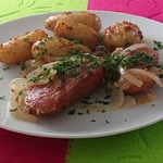 Рецепт «Жареная колбаса с луком и зеленью»: