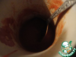 Оставшуюся в пачке томатную пасту разбавляем водой до консистенции сметаны.
