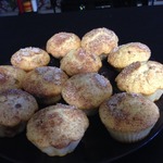 Остаток сахара (40 г) и корицы (1 ч. л.) смешать и посыпать смесью маффины. -