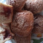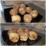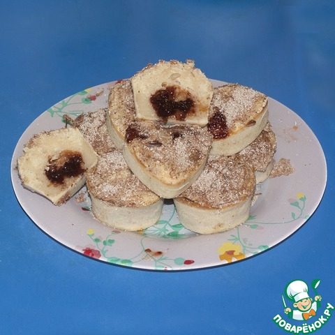 В половину добавила черничный джем, в половину нутеллу. Вышло вкусно и так и так. Тесто густое, объема хватает четко на 12 штучек.