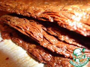 - Тесто слоеное (шоколадное, 3 куска 20х30 см) — 800 г
