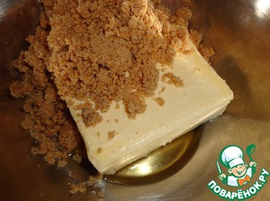 Теперь пришло время закончить крем. Для этого взбиваем масло, коньяк и пралине.