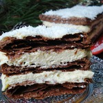 Изумительный и изумляющий десерт. В оригинале рецепта от Стельоса Парльяроса используется шоколадное слоеное тесто, но этот мильфей можно делать с обычным слоеным тестом, а также использовать его замечательный крем в тортах с шоколадным бисквитом.