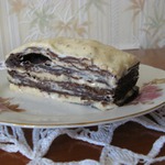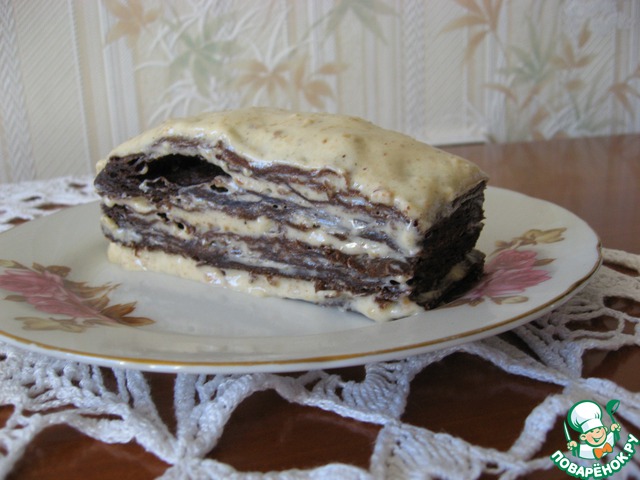 Подаем, разрезав на порционные прямоугольные пирожные.