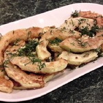 Вместо уксуса сбрызнула лимоном, жарила на оливковом масле, чеснок мелко порубила.