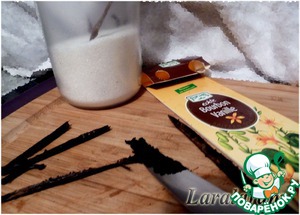 • Ванильный стручок раздракониваем: режем вдоль и тупой стороной ножа "сдираем" семена.