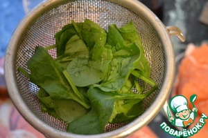4. Моем шпинат. Если вы не питаете нежных чувств к этой, в общем-то, нейтральной траве, берите её 1 к 1 в соотношении с креветками (или и того меньше).