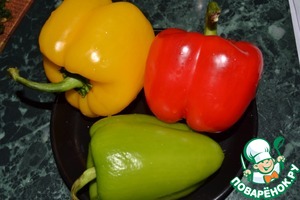 9. Закрываем рыбу фольгой. Отправляем в предварительно нагретую до 180 градусов духовку на 20 минут. Тем временем займёмся подготовкой декора) На тарелке вот такой светофорчик. Он вскоре превратится в нечто, что не имеет названия, но смотрится красиво.