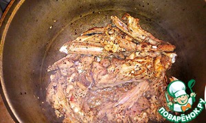 • Рёбра обжариваем до румянца, да, забыл, я их порубил помельче.
