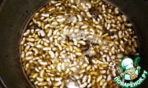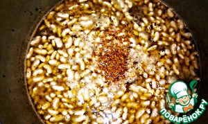 • Фасоль была замочена часа за 2 до этого, добавляем и её, доводим до кипения.