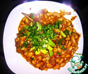 Нашёлся бараний бочок, вот экспериментировал. Готовить в казане не принципиально, просто моя ёмкость оказалась мала для 1 кг рёбер, а казан был дома. Наверное, это лобио... но я не знаю. )))