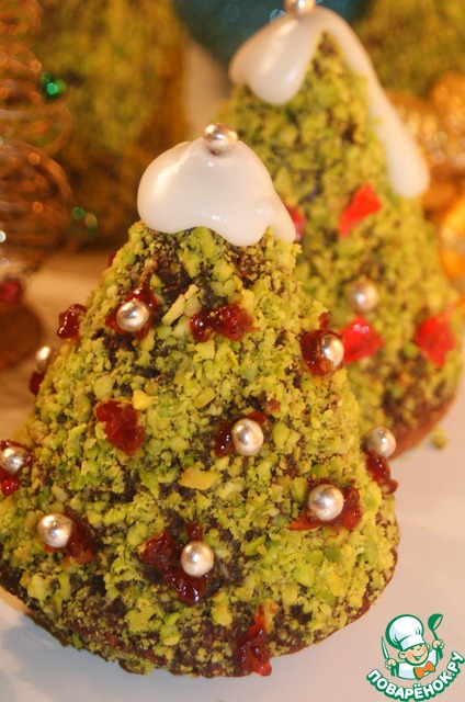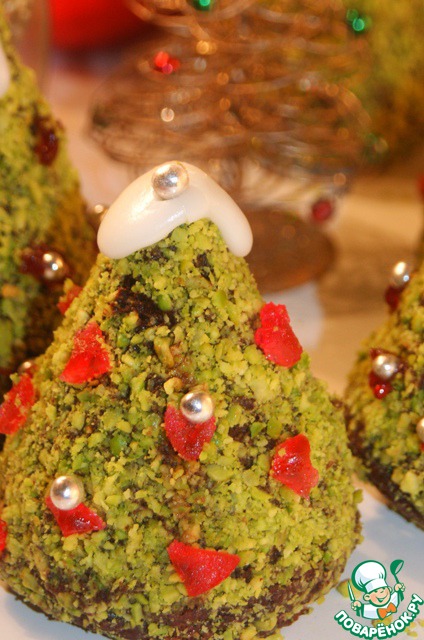 Очень простые в приготовлении, но удивительно вкусные пирожные-ёлочки из шоколадного миндального бисквита и крема карамель, покрытые шоколадом и фисташками, могут быть замечательными подарками к Новогодним праздникам и Рождеству! Поверьте, они не оставят равнодушными ни малышей ни взрослых. Если я заинтриговала вас, то милости прошу, заходите в гости! Идея рецепта взята у Виктории-passion с сайта Кулинар, но полностью изменена и адаптирована мной. Всех, празднующих сегодня, поздравляю с наступающим Рождеством! А себя поздравляю с 100-м рецептом на сайте!