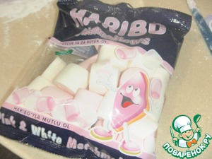 Для приготовления мастики я брала chamallows. Поскольку у меня не было красителя, я брала бело-розовый цвет чамаллоуса.
