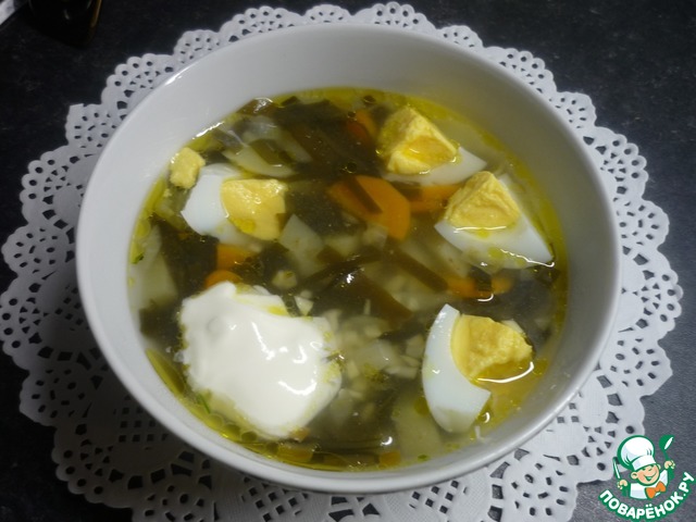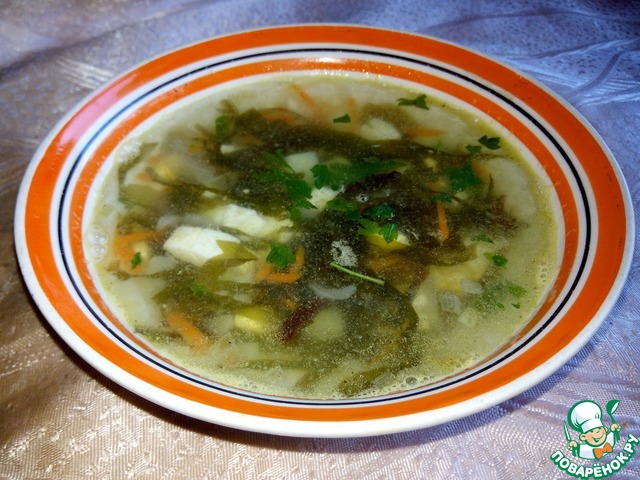 [+5]Мужу, правда, не предлагала, на дух не переносит морскую капусту, я ему параллельно зеленый щавелевый борщ сварила.