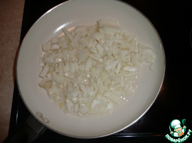 Мелко нарезать лук и обжарить на подсолнечном масле.