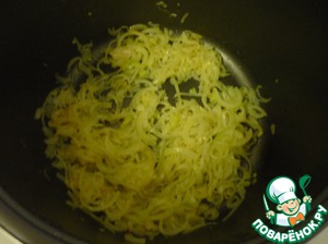 • На режиме "Выпечка" в масле немного пожарила нашинкованный полукольцами лук.